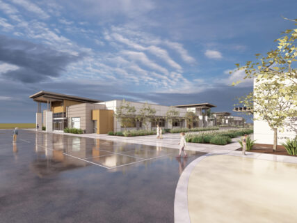 This new kindergarten – 8th grade campus is situated on 29.5 acres. The campus is approximately 118,200 sq. ft. and includes one kindergarten building, four academic buildings (for grades 1-8), a Career Tech Education-focused building, an administration/library building, a multipurpose building, a snack bar/athletic storage building, and a preschool building. The site also includes various play fields, basketball courts, playground areas, two parking lots, parent drop off/pick up areas, a bus loading zone, and a kindergarten/preschool area.