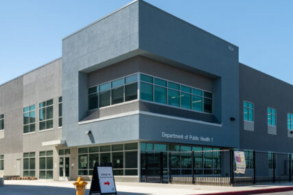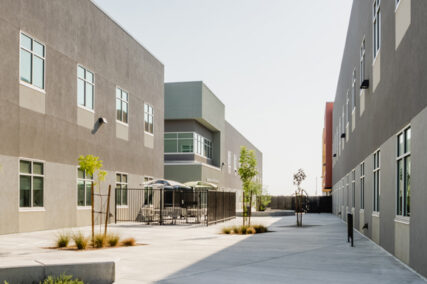 This 160,000 sq. ft. campus houses four of the Madera County Social Services departments (Administration, Eligibility, Child Welfare, and the Madera County Public Guardian). Each department is located in a separate, stand-alone two-story building, featuring distinct façades with matching interiors in either soft yellow, sea foam green, muted gray, or terra cotta, adding to the facility’s wayfinding.