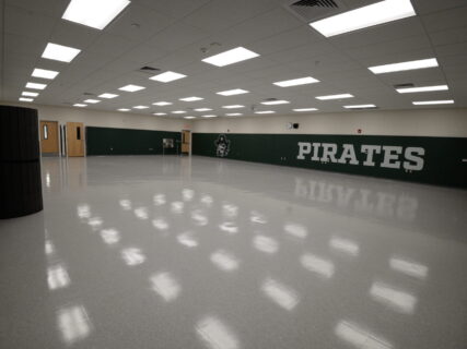 PHASE II – Includes new sports complex entry, two ticket booths, varsity and junior varsity baseball fields (with new stadium, announcer’s box, dugouts, lighting, and bleachers), and a soccer field with new lighting and bleachers.