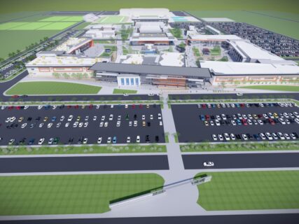 Clovis Unified’s fourth Education Complex is being built on 165 acres with over 630,000 sq. ft. of building space. The complex will include classrooms, science labs, administration building, library/computer lab, applied arts, MPR, Food Service, as well as a student union, and play fields (football stadium, track and field stands, basketball courts, baseball and softball fields, concessions, tennis courts, and soccer fields). The project also includes all on-site and off-site infrastructure improvements.